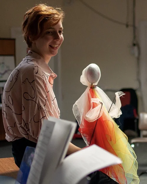 Busy Being Ze is a puppet show for children and families called which is about a non-binary puppet named Ze's journey to self acceptance inspiring love, learning and inclusivity for everyone.
